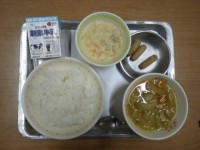 今日の献立:ご飯・牛乳・春雨スープ・ス...