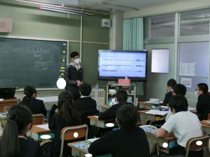 外国語科では、専科の先生と学習していました。英文をよむ練習をしていました。