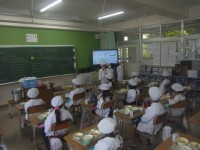 図工では、版画をしていました。彫った版にインクをつけて刷っていました。