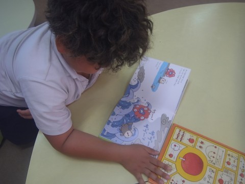 図書の時間です。新書も入ってきているので、子どもたちもたくさんのお話に触れることができます。