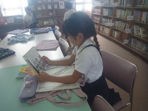 2組は図書館へ本を借りに来ていました。それぞれ興味のある本を選んで読んでいました。