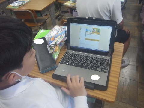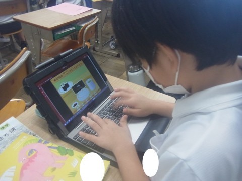 1組は理科でとじこめた空気や水の学習について復習していました。2組はキーボードレッスンに取り組んでいました。
