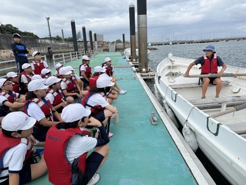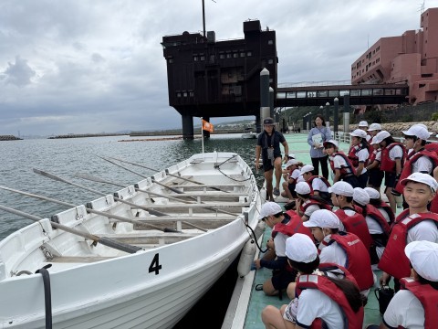 今からカッターボートに乗ります。少し風がありますが、協力して頑張ります。