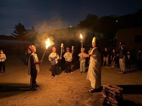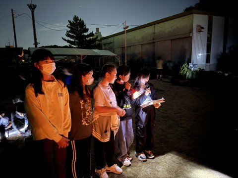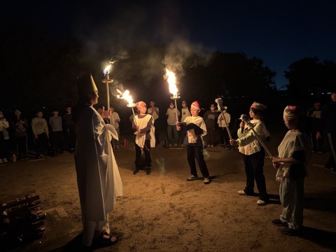 キャンプファイヤーの時間です。火の神さまから、火を受け継ぎ、誓いの言葉を言いました。それぞれの出し物もとても盛り上がりました。実行委員さんありがとうございます。