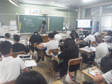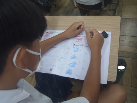 1組は算数で角柱、円柱の体積の求め方の学習をしています。2組は算数で縮尺の学習をしていました。