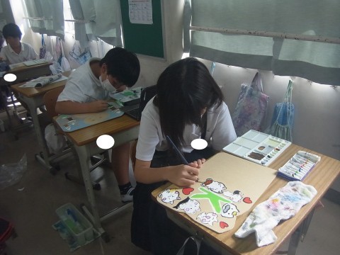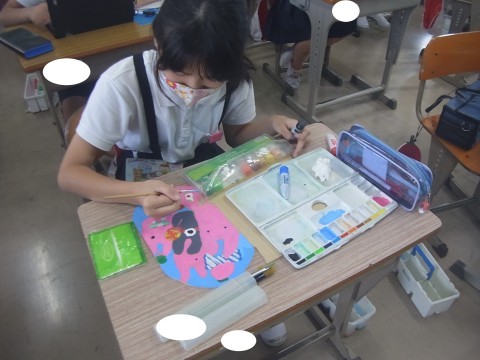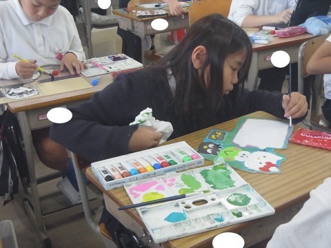 2組は図工でホワイトボード伝言板を作っています。糸のこで形を作って、色を塗っていました。