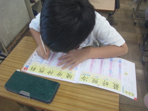 1組は算数で概数の学習をしていました。2組は新出漢字に取り組んでいました。