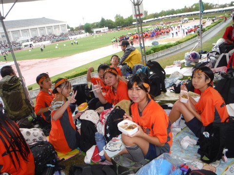 6年生は金岡陸上競技場で連合運動会に参加しました。雨の中ではありましたが、みんな精一杯、自分の力を出し切り、頑張りました。お弁当の準備もありがとうございました。