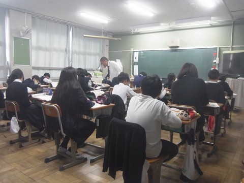 1組は社会で蘭学の始まりについて学習していました。杉田玄白、伊能忠敬など資料をもとに何をした人なのか調べていました。2組も社会で町人文化の始まりの学習をしていました。