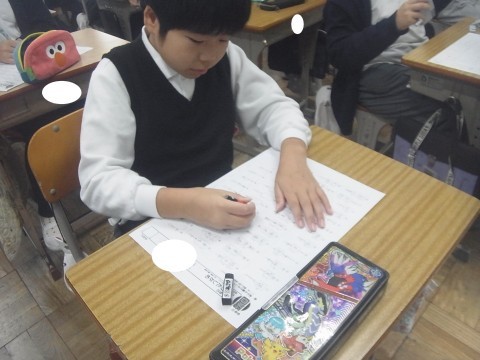 1組は漢字50問テストのために、練習していました。2組は1年生との交流会に向けてどんな交流会にするのか考えていました。