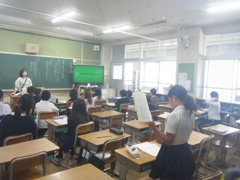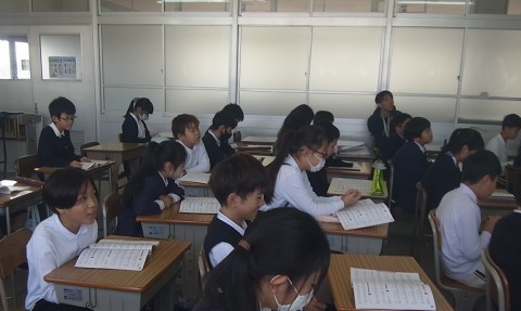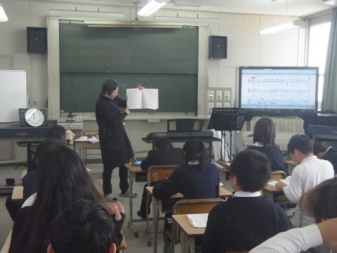 1組は音楽で「チャレンジ」を歌っていました。2組は国語で「未来につなぐ工芸品」の学習をしていました。