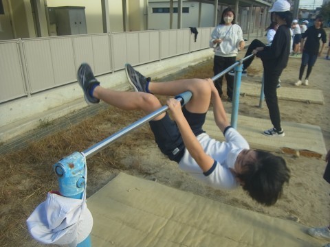1組は社会で大和側の付けかえについて学習していました。2組は体育で鉄棒をしています。様々な技にチャレンジしていました。