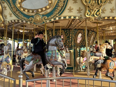 いろんな乗り物に乗っています。あと少しで活動が終わります。