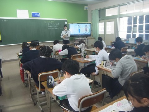 1組は算数で速さの学習をしています。2組は社会で「情報を作り、伝える」の学習をしていました。