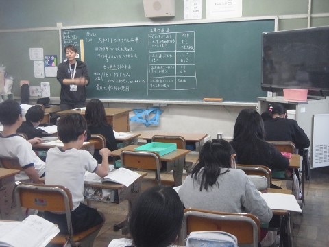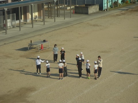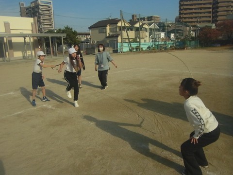 1組は社会で大和川の付け替え工事について学習していました。2組は大繩で8の字跳びにチャレンジしていました。