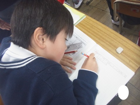 2組は理科でものの温度と体積について学習しています。今日は金属の球が温度によって体積が変わるのか予想していました。