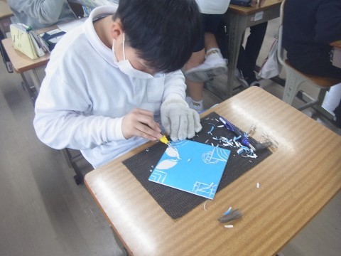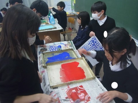 1組は体育でとび箱をしていました。台上前転など様々な技にチャレンジしていました。2組は図工でタイル版画をしていました。小さな板で彫った模様を正方形の紙に4回刷ることで大きな模様になります。どんな作品に仕上がるか楽しみです。