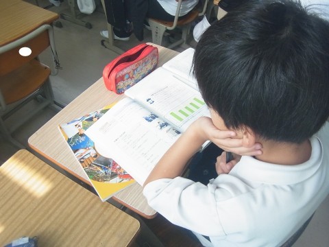 社会でまちの安全を守る警察官の学習をしていました。交番の一日の流れなどを教科書で確認していました。