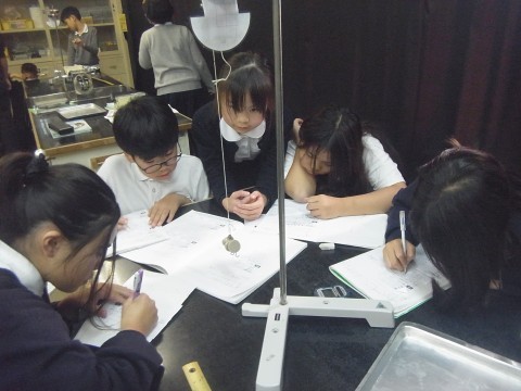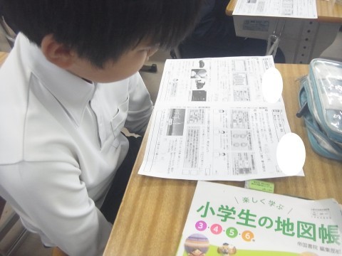 1組は社会で工業生産について学習したことをプリントで振り返っていました。2組は理科でふりこのきまりの学習をしています。実験結果から考察していました。