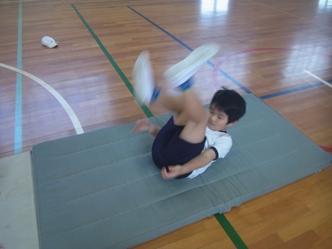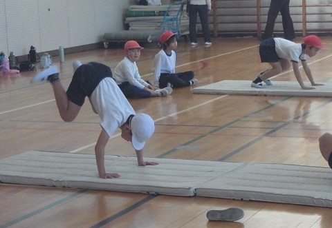 1組は道徳の授業で相手も自分も気持ちよく過ごすために大切なことなどを考えていました。2組は体育でマット運動をしていました。後転やカエルの足うちも上手にやっていました。