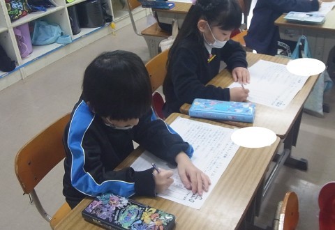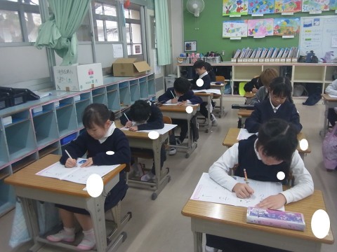 1組は最後に書き方ノートをしていました。冬休みの宿題でも書き方があるので、丁寧に書いてきてほしいですね。2組は通知表を渡していました。
