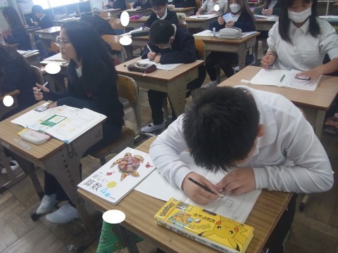 1・2組ともに算数で面積の学習をしていました。L字型の面積の求め方を考えていました。