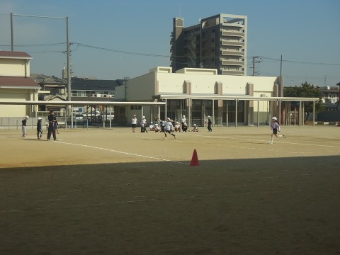 1組は体育で折り返しリレーをするためにタイムをはかっていました。2組は国語でロボットの学習をしていました。