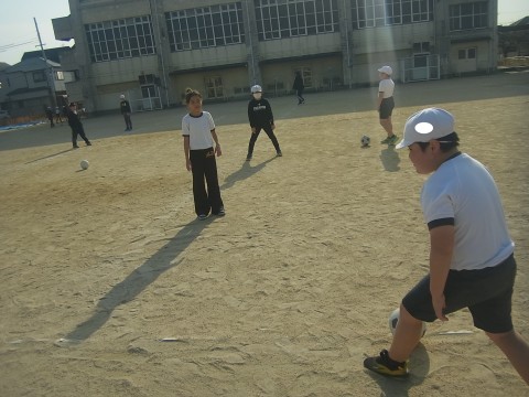 1組は国語で「風船でうちゅうへ」の学習をしていました。印象に残ったことを発表していました。2組は体育でサッカーをしていました。