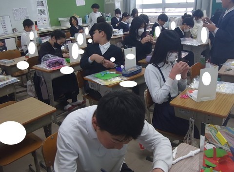 1組は図工でミラーワールドを作っていました。鏡の特性を生かして、紙粘土や画用紙を使って工夫して作っていました。2組は理科で水溶液を冷やしたらどうなるか、実験をしていました。