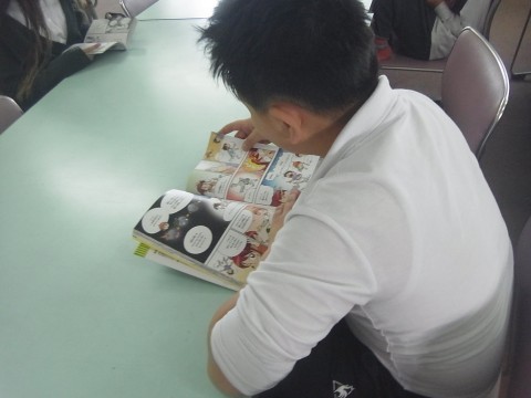 1組は外国語活動です。ペアで交流していました。2組は図書で集中して本を読んでいました。