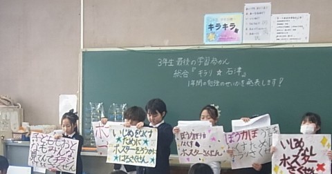 3年生は総合で「キラリ☆石津の町」の発表です。それぞれ一年間学んできたことをグループで発表しました。自分たちの石津の町を誇れるように取り組んでいきたいですね。