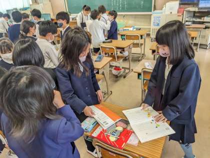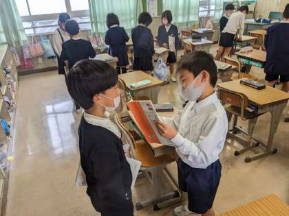 授業で「どきん」の詩を読みました。声の大きさや読む速さ、動作などの工夫を考えて友だちと読み合いをしました。