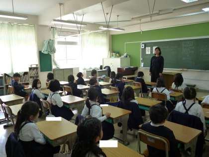 入学して、1週間がたとうとしています。学校の生活にも少しずつ慣れてきて、元気いっぱいの1年生です。今日は、「はじめてのなまえ」カードに名前を書いたり、先生のお話をいい姿勢で聞いたりして、勉強を頑張っていました。