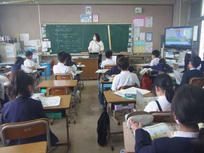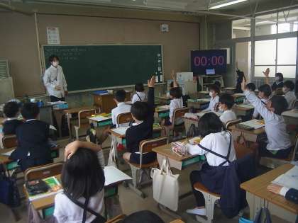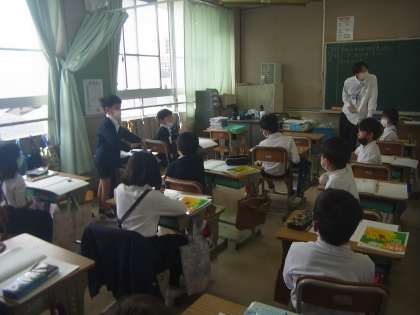学校の中の生き物を考えて発表しています。積極的にみんな発表していました。