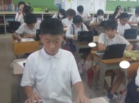 最後は高学年5・6年生。5年生は徒走100m走です。去年よりだいぶ長くなりましたが、最後までしっかり走っていました。ダンスではフラッグがとてもそろっていてきれいでした。