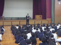 研修テーマをもとに、本時の授業をタブレットを活用してグループで話し合い、全体で交流しました。