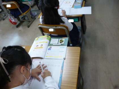 算数では、繰り上がりのたし算の学習をしていました。
