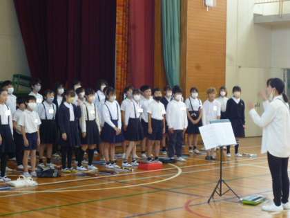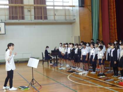 体育館で、連合音楽会の合唱曲の練習をしていました。