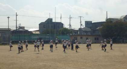 体育では、運動場で縄跳びをしていました。