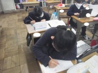 体育では、長縄をグループごとにしていました。連続して跳べるよう頑張っていました。