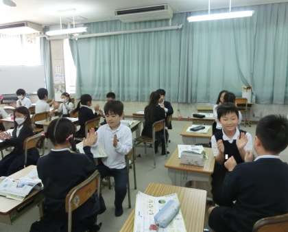 音楽では、「茶つみ」の曲に合わせて手遊びをしていました。