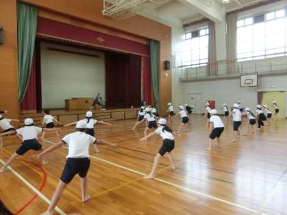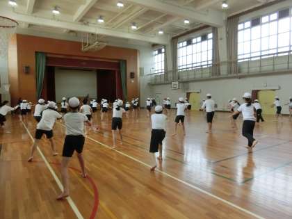 体育参観に向けて、ソーラン節の踊りを練習していました。