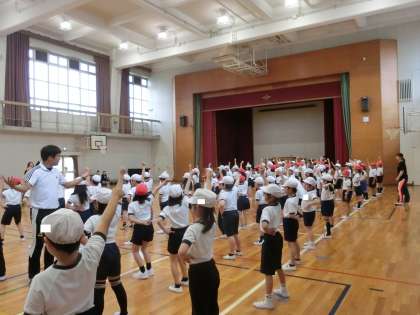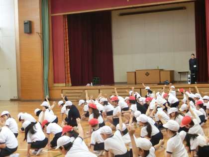 少し肌寒い日となりましたが、3・4年生も体育館で体育参観に向けてダンスの練習を頑張っていました。