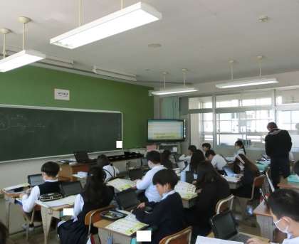 外国語科では、何色が好きか、英語でタブレットに入力していました。