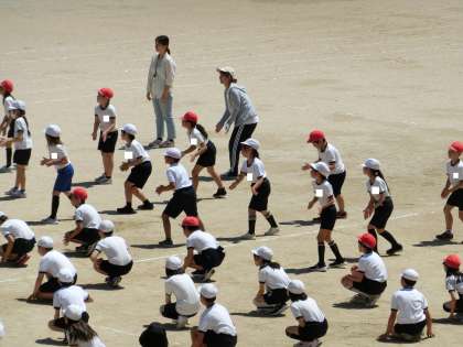 昨日とうって変わって、とてもいい天気になりました。今日は、運動場でダンスの練習です。動きをしっかり覚えて、かけ声も入れながら、元気に踊っていました。