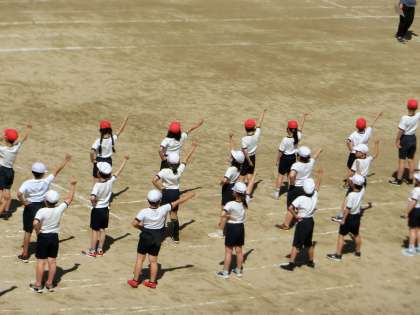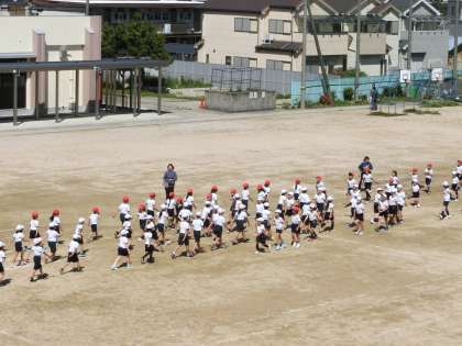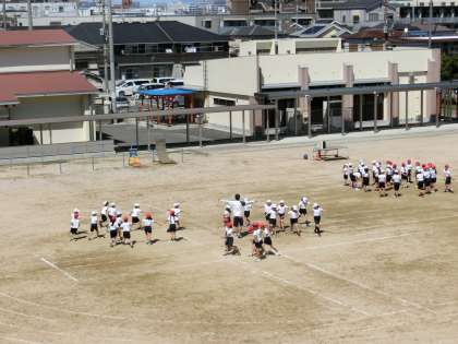 午後からは、太陽が出て気温も上がってきました。3・4年生は、運動場で、隊形移動を中心に練習していました。