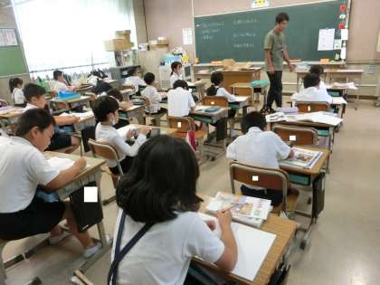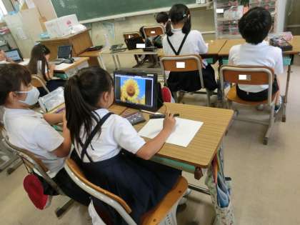 図工では、はとぶえに応募する作品を描いていました。テーマは「夏を見つけたよ」です。