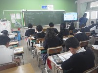 1組は社会で工業について学習しています。外国とのつながりを貿易や運輸と関連付けて考えています。2組は算数で異分母の分数のたし算の仕方を考えています。