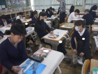 音楽では、上と下のパートにわかれて、「もみじ」の2部合唱をしていました。