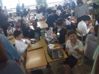 3年生は図工でアルミホイルを使って動物を作っていました。タブレットで作りたい動...